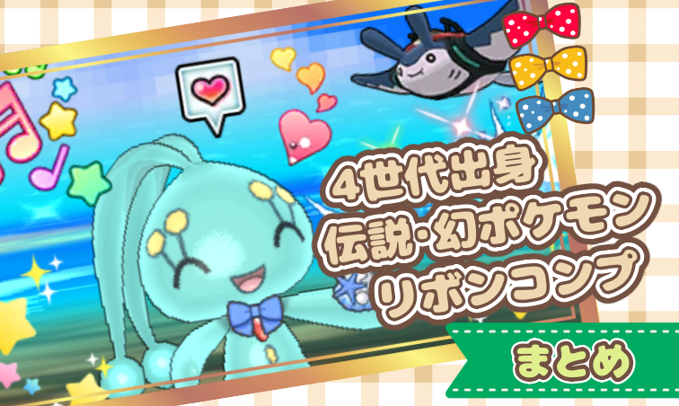 ポケモン4世代出身の伝説・幻ポケモン用 世代別取得可能リボン及び入手方法一覧記事 のまとめです。
