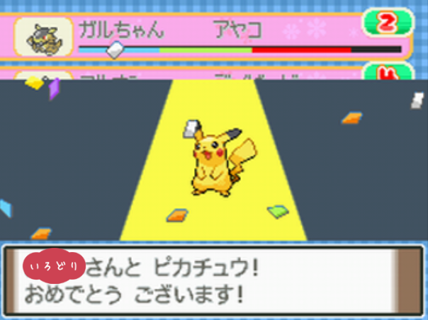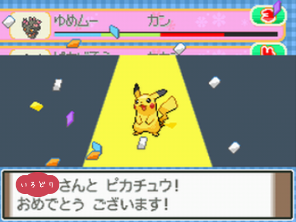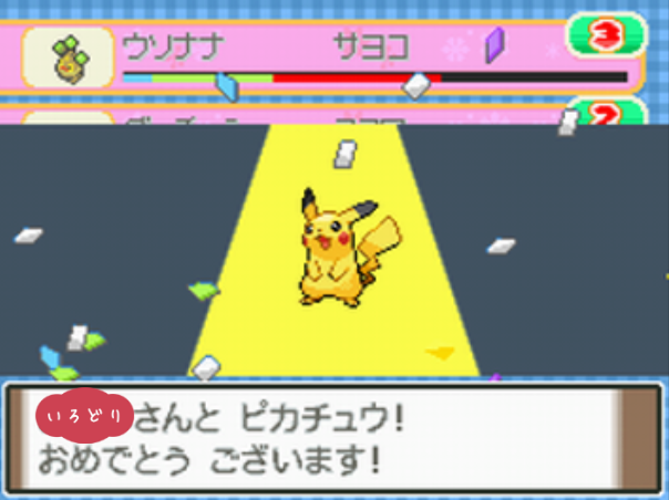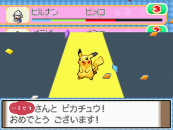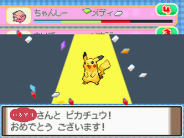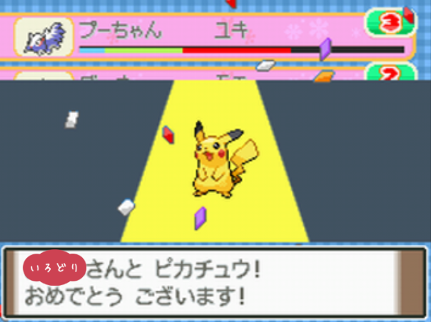 ポケモンコンテストかわいさコンテストのノーマルランクで優勝する。 |
