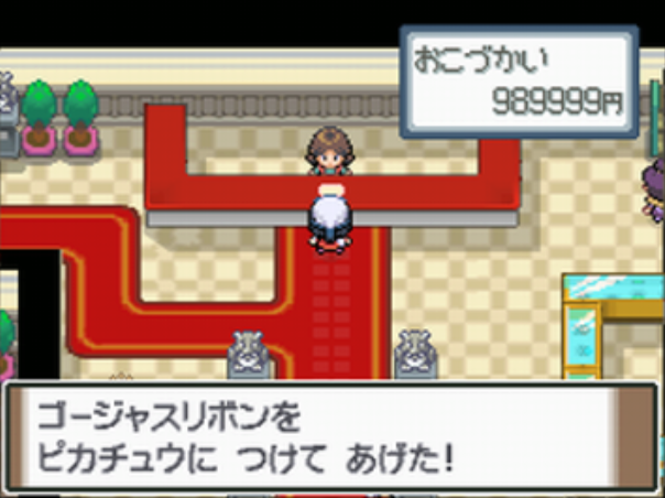 月曜日に、DPPtではナギサシティのフミコ、HGSSでは40番水道のツキコに話しかけると先頭のポケモンが取得。 ※HGSSではすべての曜日兄弟から一通りアイテムを貰った後からリボンの取得が可能になる。 |