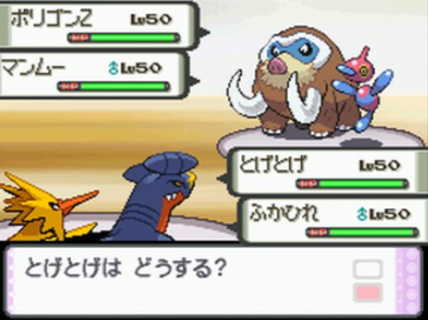 バトルタワーのつうしんマルチバトルで50連勝すると参加ポケモン全員が取得。 ※バトルタワーはDPPtではバトルパーク内、HGSSではバトルフロンティア内の施設。 |