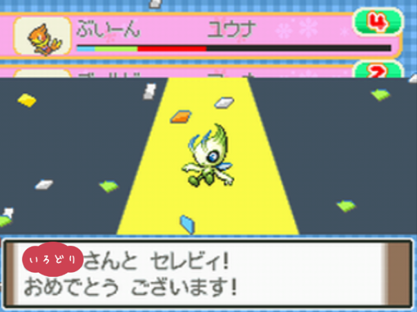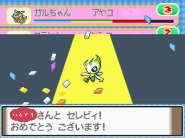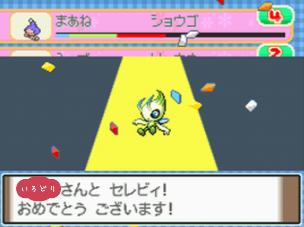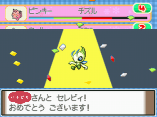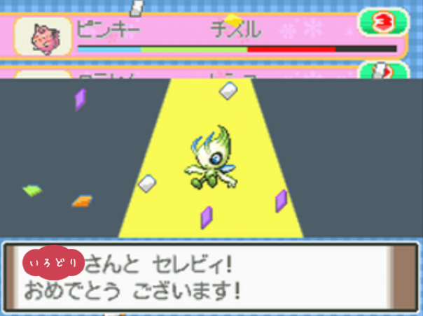ポケモンコンテストかわいさコンテストのノーマルランクで優勝する。 |
