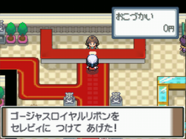 火曜日に、DPPtではナギサシティのフミコ、HGSSでは29番道路のヒコに話しかけると先頭のポケモンが取得。 ※HGSSではすべての曜日兄弟から一通りアイテムを貰った後からリボンの取得が可能になる。 |