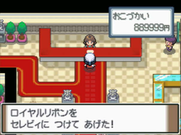 土曜日に、DPPtではナギサシティのフミコ、HGSSではフスベシティのツチオに話しかけると先頭のポケモンが取得。 ※HGSSではすべての曜日兄弟から一通りアイテムを貰った後からリボンの取得が可能になる。 |