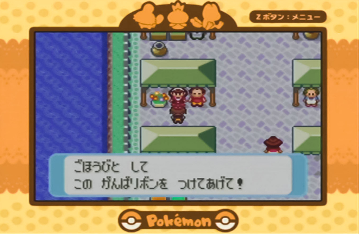 努力値が最大(510)まで振られたポケモンをてもちの先頭にし、がんばりやの女性に話しかけると先頭のポケモンが取得。 |