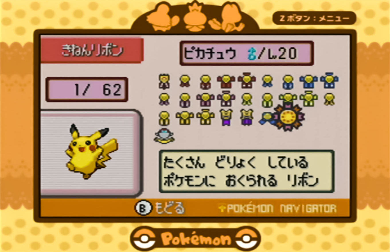 6世代以降ではおもいでコンテストリボン1個に変化する。 |