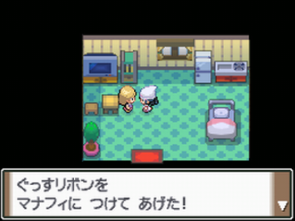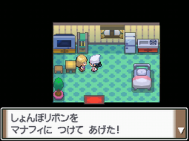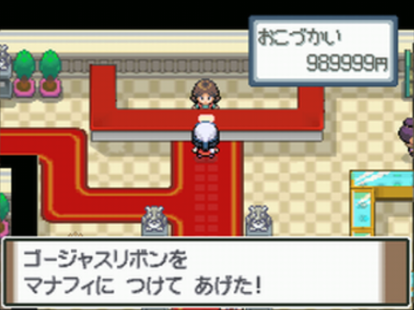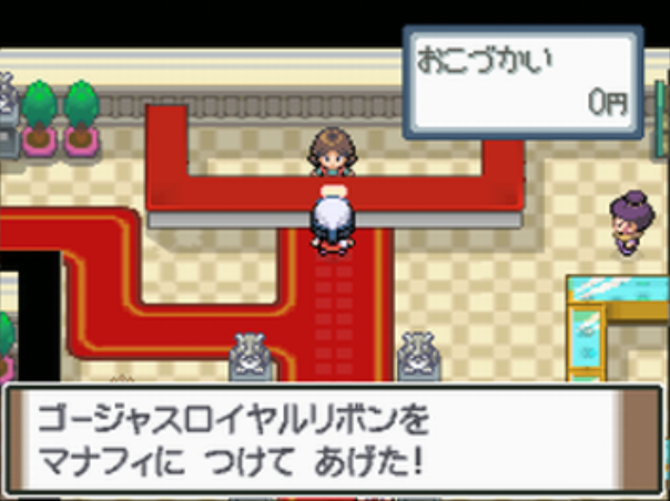 月曜日に、DPPtではナギサシティのフミコ、HGSSでは40番水道のツキコに話しかけると先頭のポケモンが取得。 ※HGSSではすべての曜日兄弟から一通りアイテムを貰った後からリボンの取得が可能になる。 |