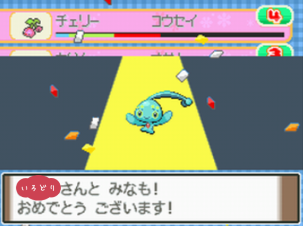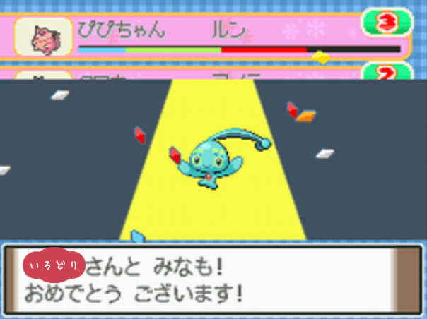 ポケモンコンテストかわいさコンテストのノーマルランクで優勝する。 |