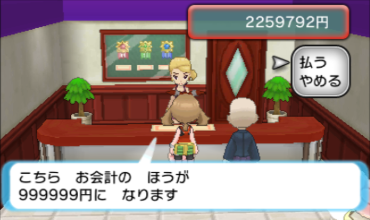 999,999円で購入すると先頭のポケモンが取得。 |