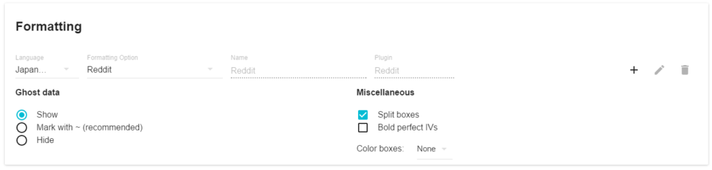 また、コフキムシのタマゴのPSVを調べる際、Defaultやカスタム表示ではコフキムシの柄が表示されなかったため、筆者はPSVを調べる作業ではFormatting OptionをRedditにして確認している。