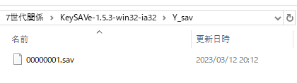 から 00000001.sav をコピーし、わかりやすい場所に貼り付ける。ファイル名の後ろに -blank とつけておく。(筆者はキー作成時と同様のフォルダに貼り付けた)